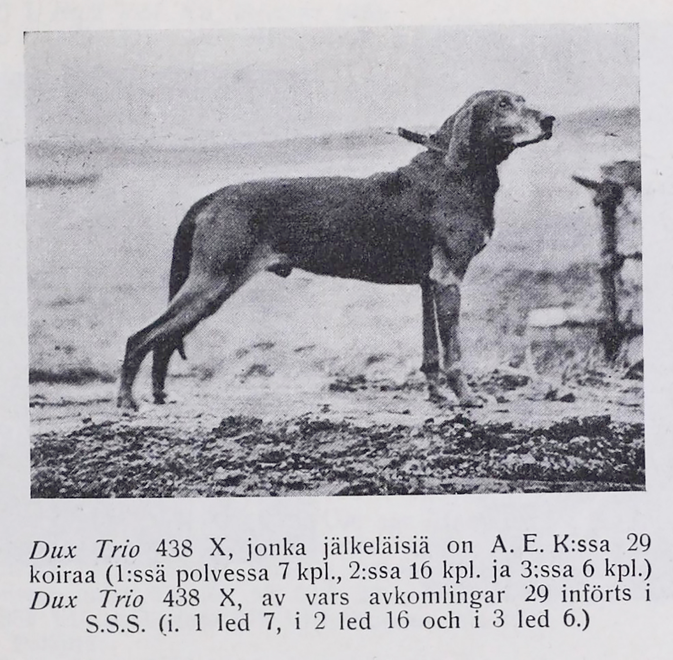 3.8.1909 syntyi Härmi Trion ja Pilkku Trion pentue, jonka pennuista tässä kolme: 1. Polle, 2. Heista ja 3. Kraisti. Trio-lisänimen koira sai vasta sitten, kun se osoitti olevansa ulkomuodoltaan ja metsästysominaisuuksiltaan siitokseen sopiva. Ainakaan omalla ristimänimellään nämä kolme pentua eivät lisänimeä saaneet.