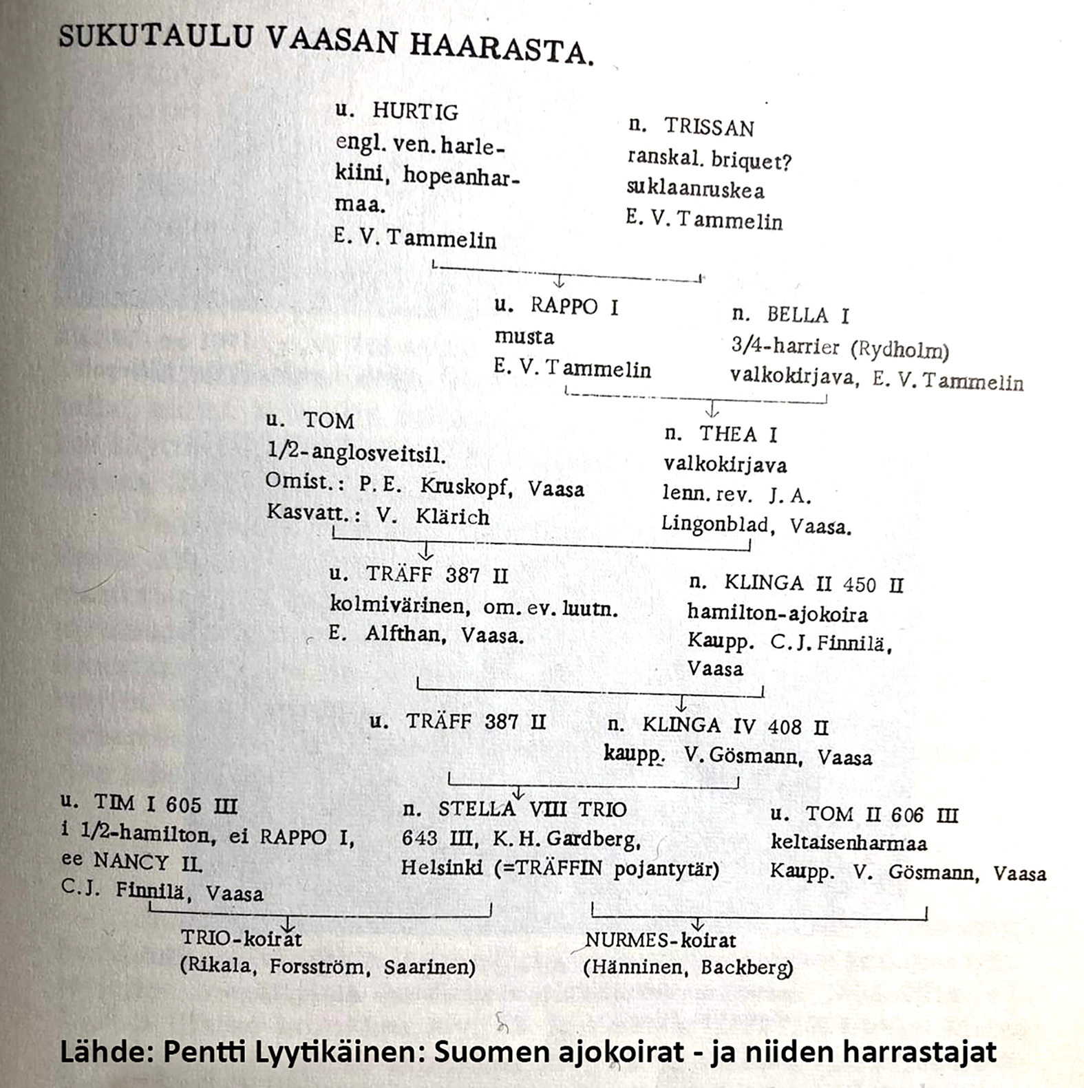 Trio on ainoa ennen ensimmäistä maailmansotaa perustetuista kolmesta siitosyhdistyksestä (Trio, Lindholm-yhtymä ja Träff-rengas), joka 20-luvulle tultaessa oli saanut kasvatettua sukurekisteriinsä kirjatut koirat sataan yksilöön. Rikala arvioi, että vasta 250-300 täysikasvuista, riittävän yhtenäistä koiraa olisi se taso, jolloin voitaisiin mahdollisesti puhua kannasta tai jopa rodusta.